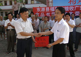 2007年06月,我司總經理朱榮業(右一)慰問東源縣福利院捐贈